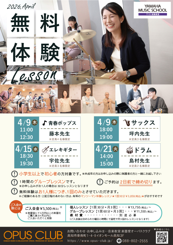 音楽教室OPUS CLUBでは無料体験レッスンを実施しております。