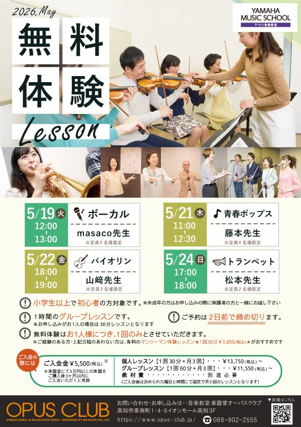 音楽教室OPUS CLUBでは無料体験レッスンを実施しております。