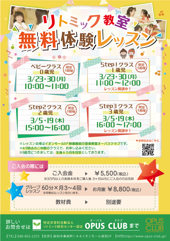 音楽教室OPUS CLUBではリトミック無料体験レッスンを実施しております。