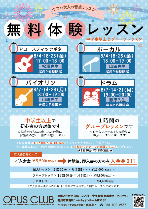 ★2023.7/1(土)〜8/31(木)までに体験レッスンを受講した方