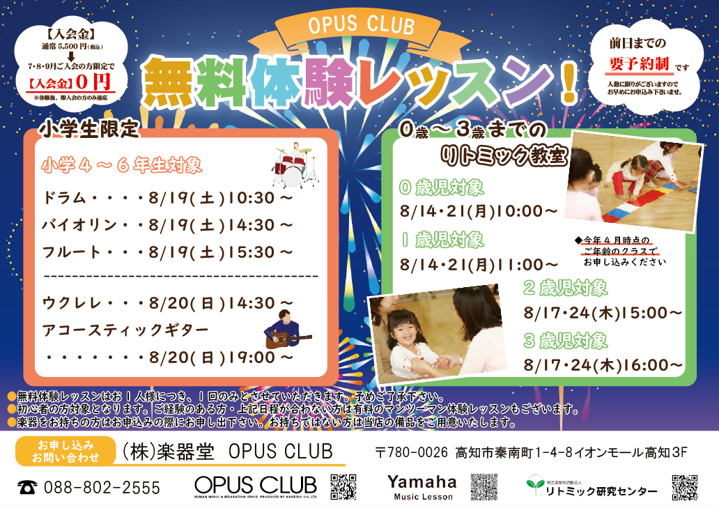 →★★小学生限定&リトミック無料体験レッスン(8月)はこちら