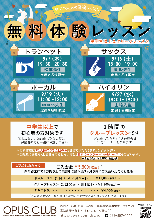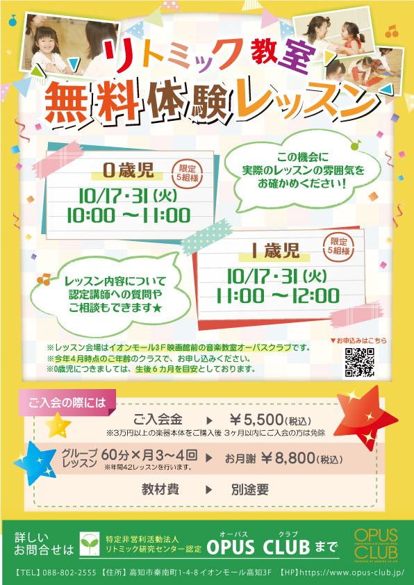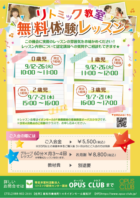 ●レッスン会場:イオンモール高知3Fオーパスクラブ内ライラホール