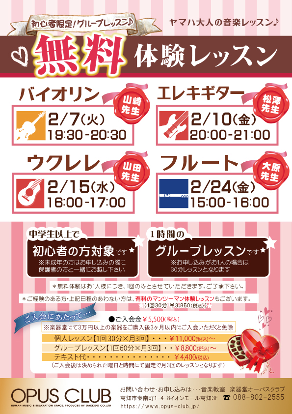 2月の無料体験レッスン♪ ※要予約