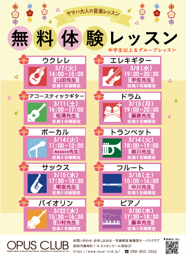3月の無料体験レッスン♪ ※要予約