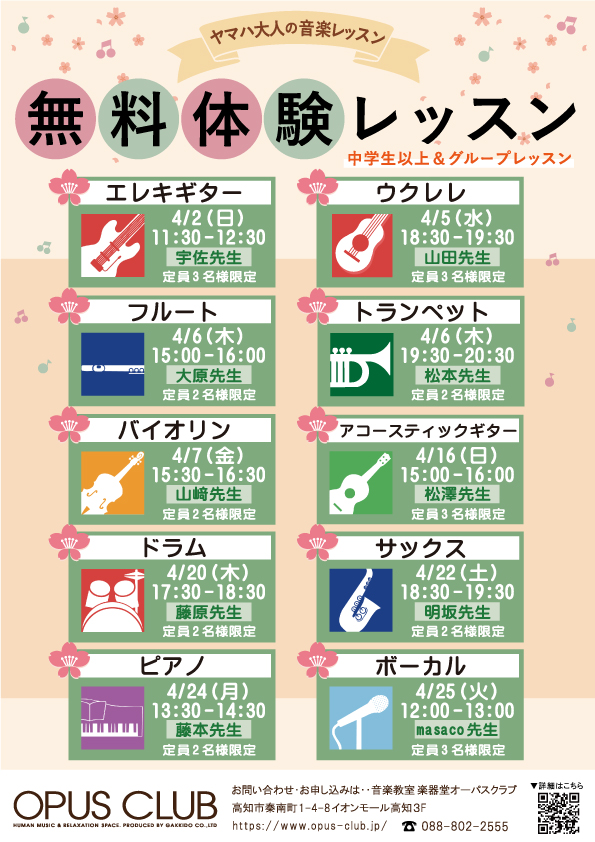 4月の無料体験レッスン♪ ※要予約