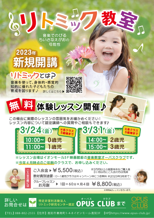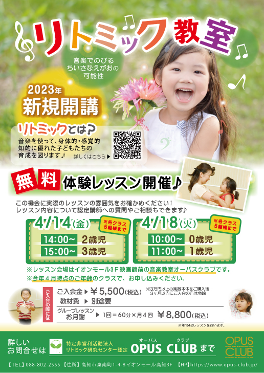 🌷リトミック教室 開講のお知らせ