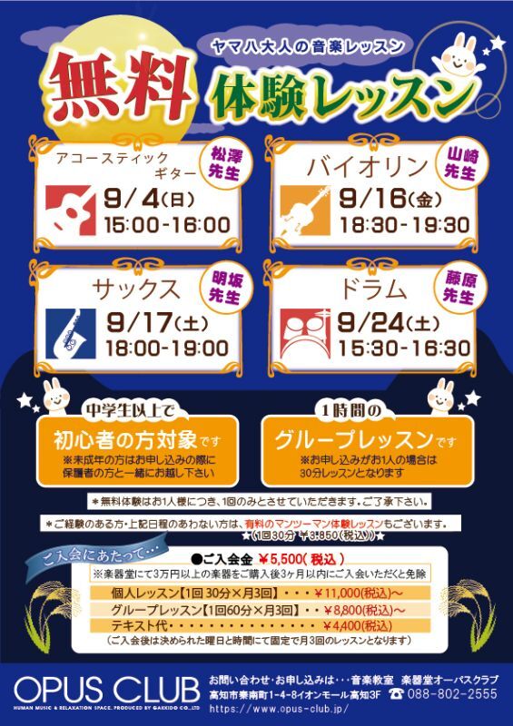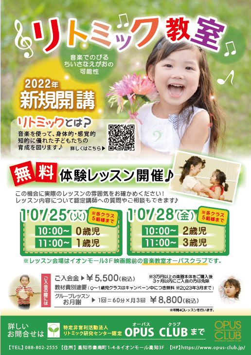 ●レッスン会場:イオンモール高知3Fオーパスクラブ内ライラホール