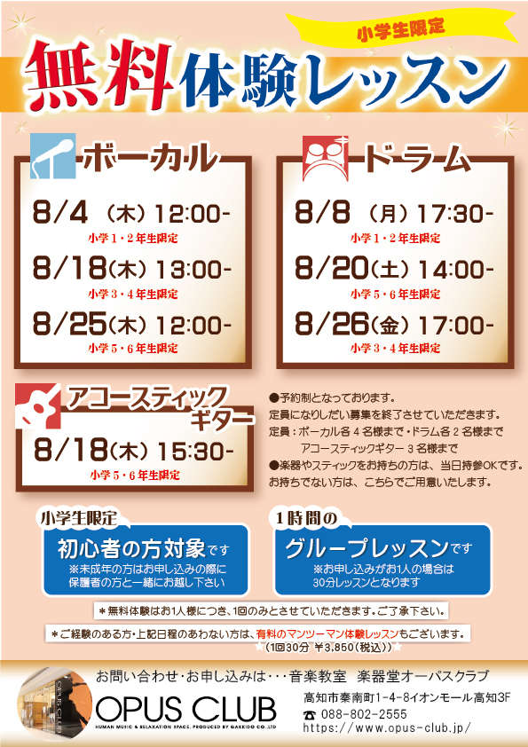 イオンモール高知 専門店街1F 南コートにて17:00〜・18:00〜の2回公演で行います。