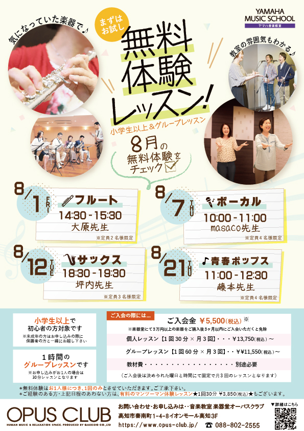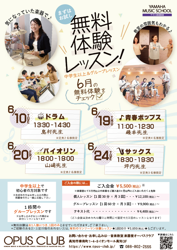●参加費:無料 ※無料体験はお1人様につき、1回のみとさせていただきます。