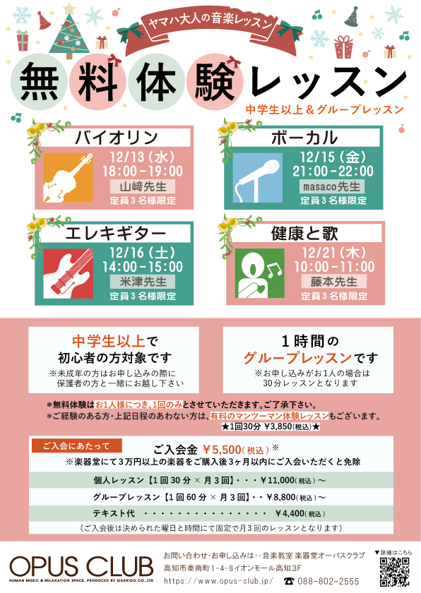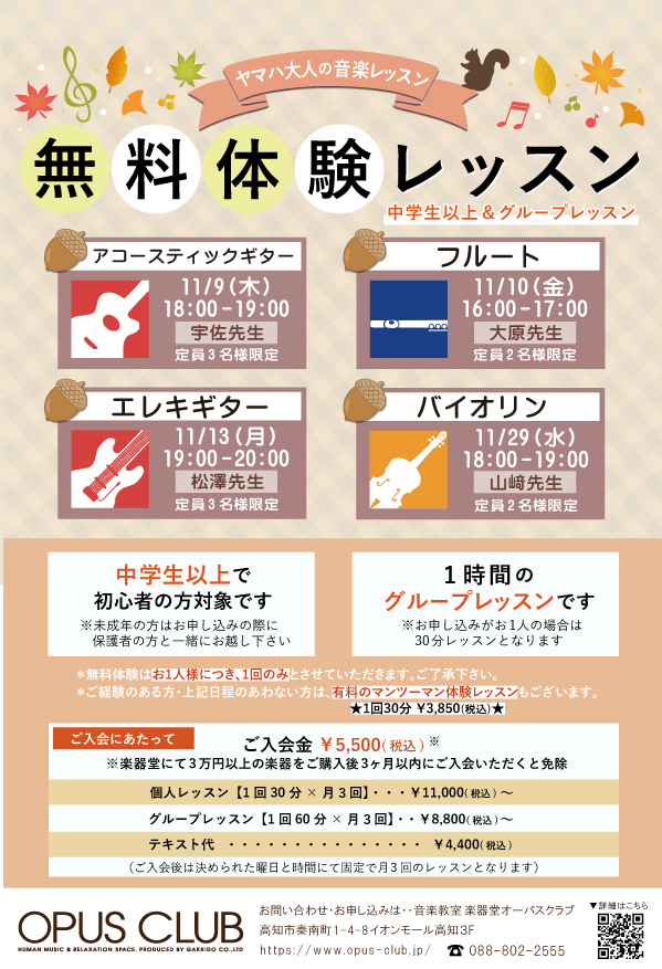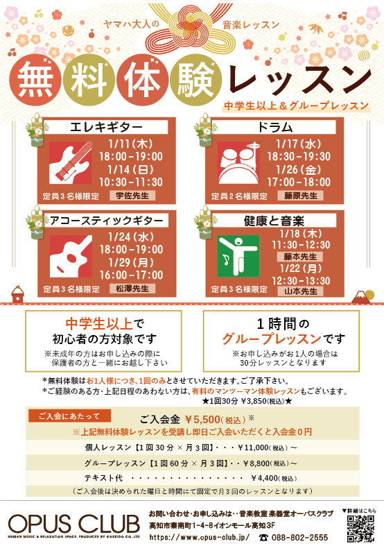 ●レッスン会場:イオンモール高知3Fオーパスクラブ内ライラホール