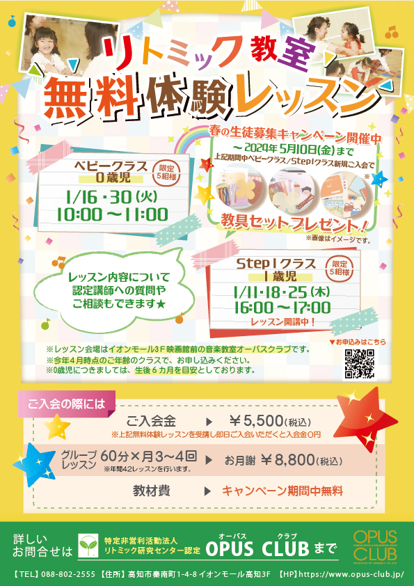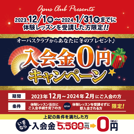 2023.12/1〜2024.1/31までに体験レッスン受講した方(もしくはそのままご入会される方)限定で