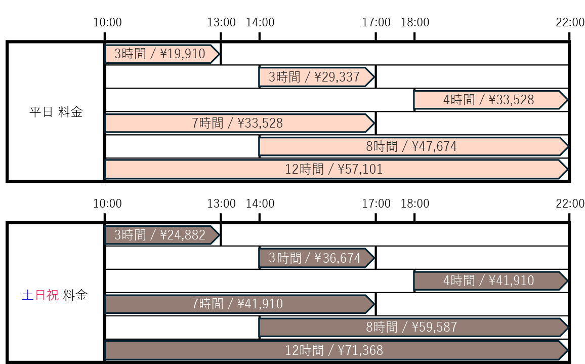 ★持ち込み機材・設備をご利用される場合は、¥11,000(税込)を頂戴いたします。
