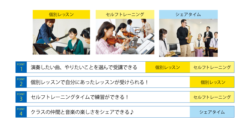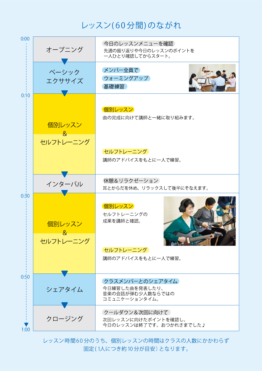 自分のペースで楽しみながら、クラスの仲間と音楽の楽しさをシェアするヤマハならではのレッスンです。
