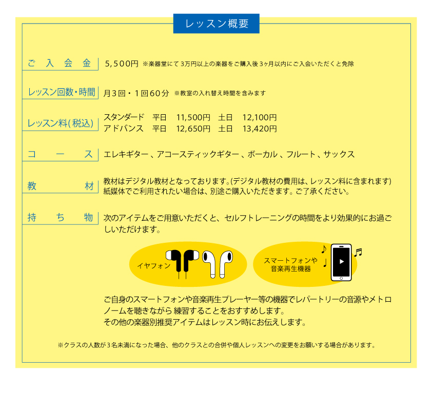 ※ヤマハオリジナルテキストに収載された楽曲以外で受講を希望される場合は、講師と相談の上、ご自身でご用意いただきます。